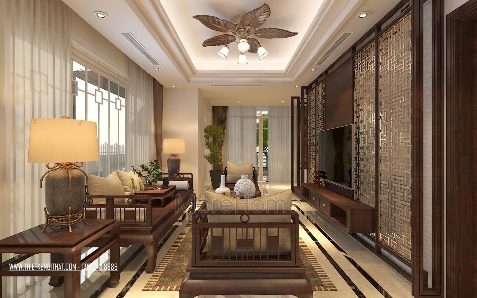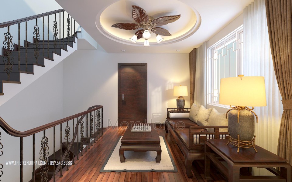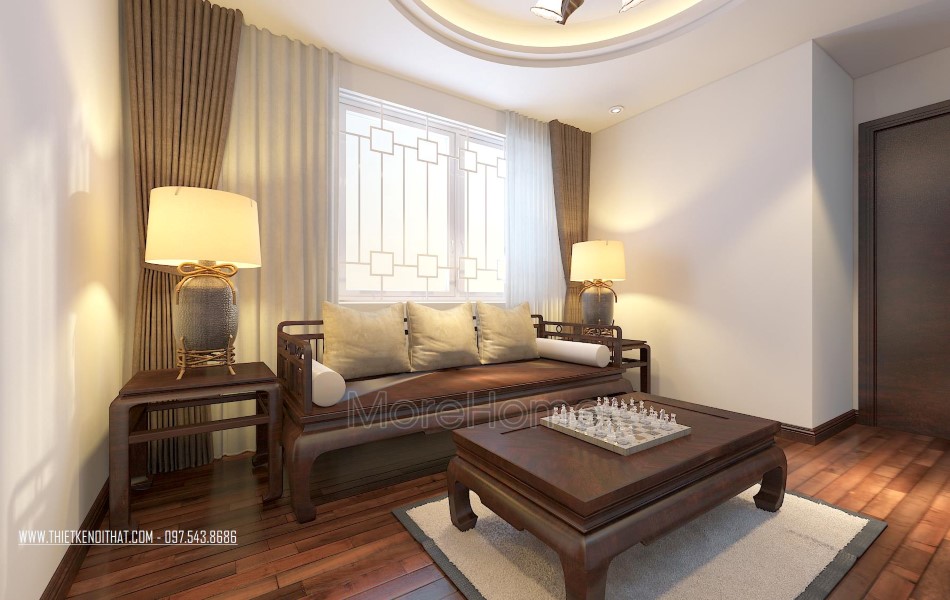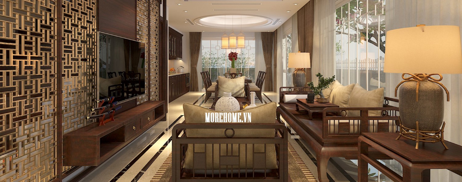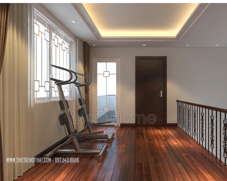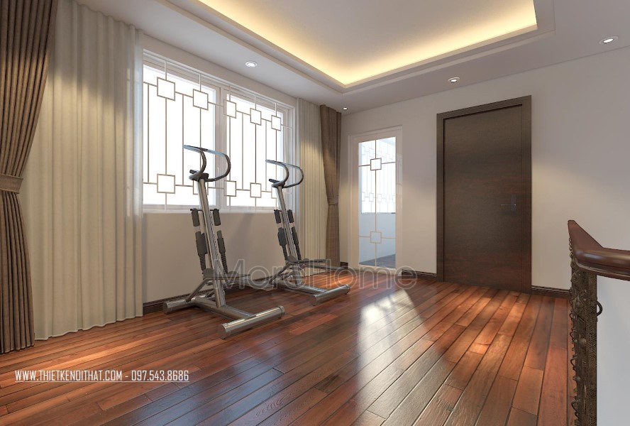 Một điểm đặc biệt không thể không nhắc đến chính là thiết kế bức vách ngăn khéo léo tạo một mặt phẳng ấn tượng. Thiet ke noi that biet thu Vinhomes Thang Long này không những đảm bảo tính rõ ràng trong thiết kế, giúp phân chia không gian một cách hợp lý, bên cạnh đó còn góp phần lớn giúp tạo điểm nhấn về mặt thẩm mỹ. Cách tạo hoa văn không quá cầu kỳ nhưng vô cùng hút mắt, để lại ấn tượng tốt cho cả không gian.