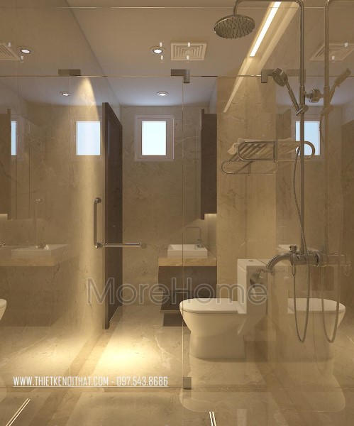 Cuối cùng là thiết kế nội thất phòng tắm hiện đại. Các vật liệu nhẹ được ưu ái sử dụng nhằm tạo cảm giác mở và thông suốt cho không gian. Bạn có nhu cầu thiết kế nội thất và thi công biệt thự VinHomes Thăng Long vui lòng liên hệ: 0975438686 để được tư vấn chi tiết và nhận bản vẽ 3D để có thể lựa chọn cho mình những phong cách thiết kế nội thất phù hợp nhất với không gian căn nhà của bạn. Morehome là đơn vị uy tín hàng đầu chuyên về lĩnh vực thiết kế thi công nội thất trọn gói tất cả các công trình. Bạn có thể truy cập trực tiếp vào website: thietkenoithat.com để thấy được sự lựa chọn đơn vị thiết kế thi công của mình là hoàn toàn đúng đắn, Morehome luôn sẵng sàng đồng hành cùng bạn.