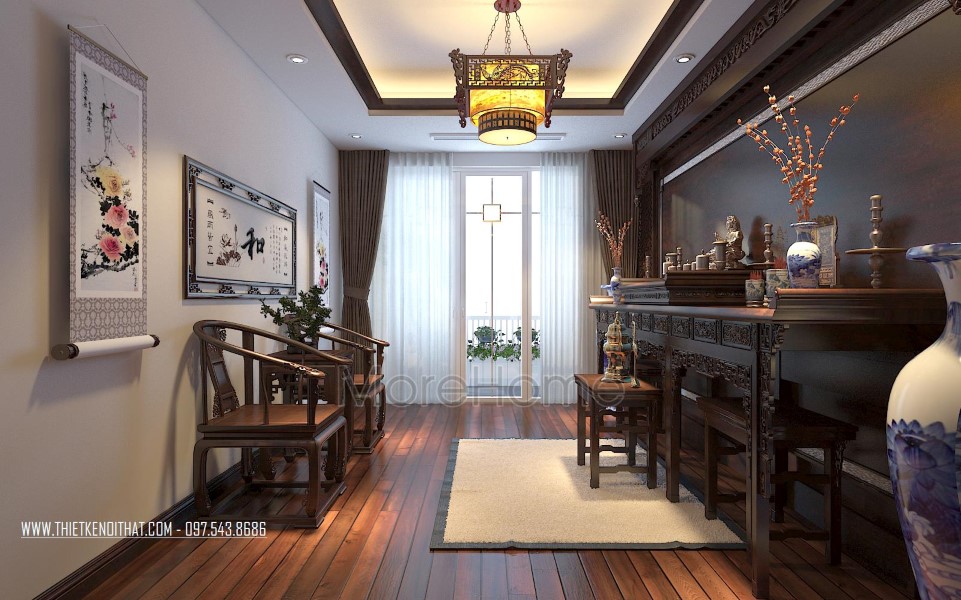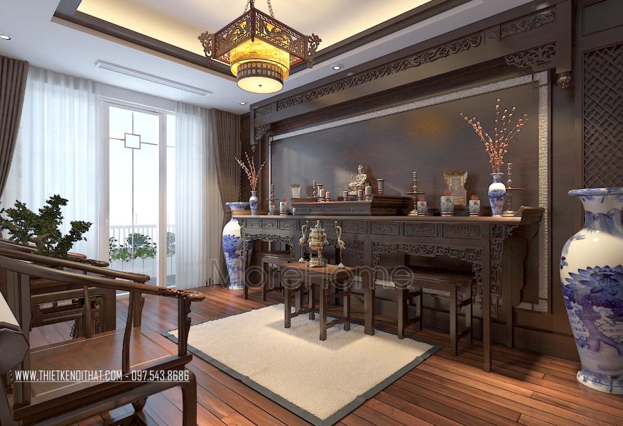 Thiết kế nội thất phòng thờ nghiêm trang và tinh tế