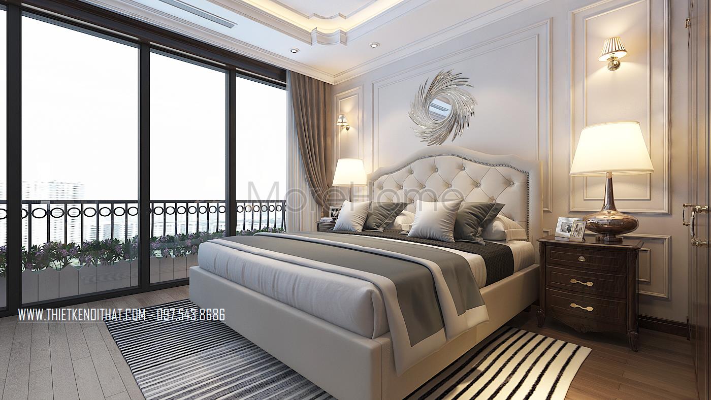 Phòng ngủ thứ 2 được thiết kế sang trọng hơn với với đầu giường khung gỗ bọc nỉ cao cấp. Bàn trang điểm được thiết kế cổ điển giúp cho gia chủ có được không gian làm đẹp tuyệt vời nhất.