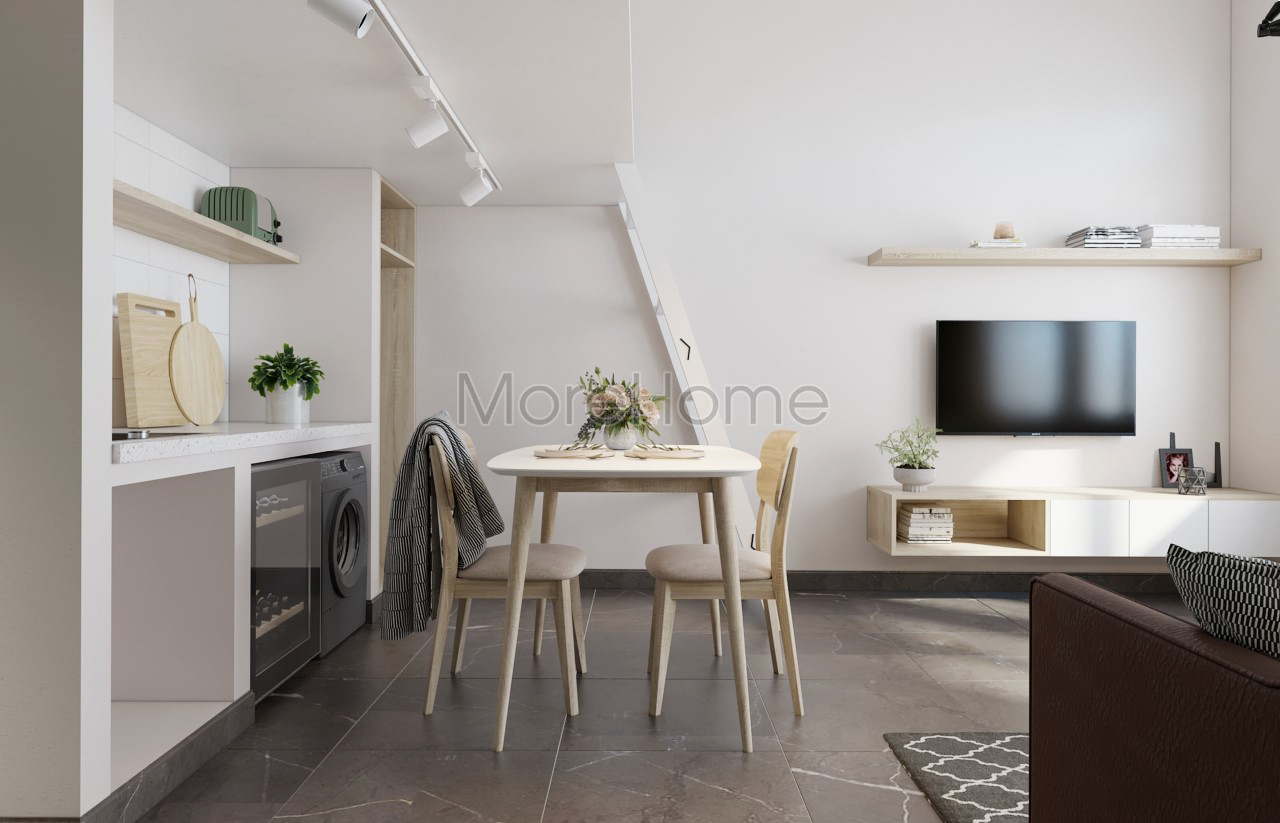 Thiết kế nhà phố có gác lửng luôn đang là xu hướng hiện nay của các cặp vợ chồng trẻ. Với diện tích nhỏ hẹp thì phương án thiết kế nhà có gác lửng rất phù hợp với người Việt. Khi thiết kế căn nhà phố có gác lửng đầu tiên này KTS Morehome đã cùng với gia chủ thảo luận về phong cách thiết kế nội thất làm sao để vừa hiện đại, lại vừa thể hiện được đẳng cấp và sự khác biệt.