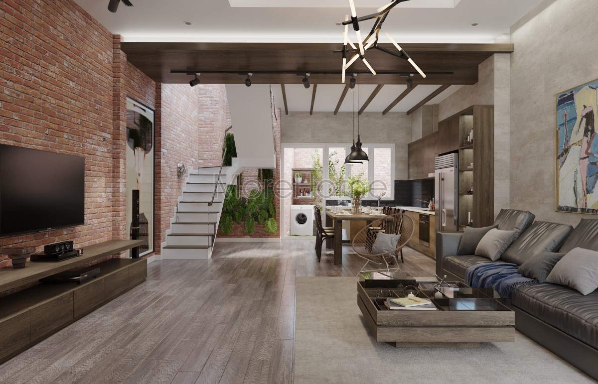 Sau khi thảo luận với gia chủ xong KTS Morehome đã nghĩ ra ý tưởng thiết kế nội thất nhà phố có gác lửng hiện đại với xu hướng mộc mạc nhưng vẫn thể hiện được đẳng cấp cho ngôi nhà.