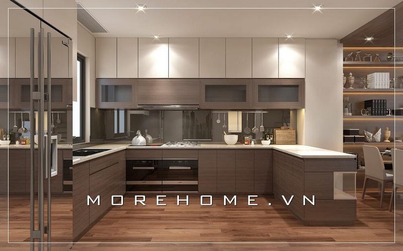 Thiết kế nội thất phòng bếp cho căn hộ hiện đại, sang trọng và thuận tiện.